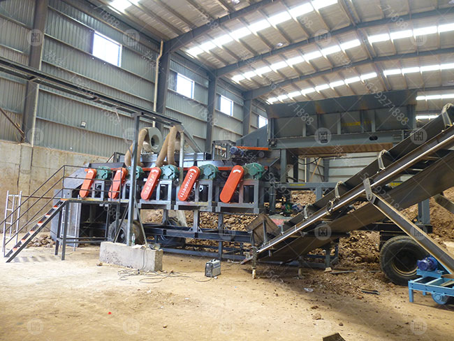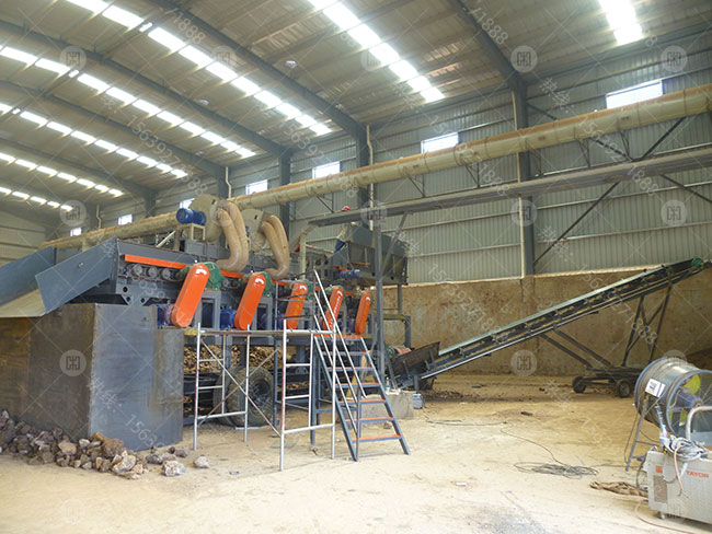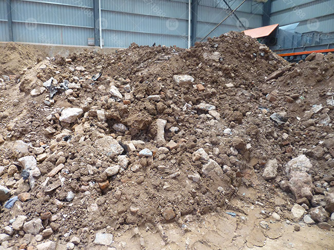 該用戶原料主要來源于建筑固廢,原料黏土較多,里面夾雜的雜物也較多,如:塑料、鋼筋、泡沫等輕物質(zhì)。經(jīng)公司技術(shù)部門研究,在泥石分離機的基礎上增加了風機、打散、除鐵等裝置,來有效進行對該復雜的物料進行分選。