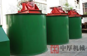 攪拌桶又叫攪拌槽,主要用于浮選前礦漿事先經(jīng)過準(zhǔn)備并用浮選藥劑處理,使礦漿與藥劑充分混合,同時還起到緩沖、分配、攪拌提升礦漿的作用,充分為選礦作業(yè)創(chuàng)造條件,攪拌均勻出料迅速