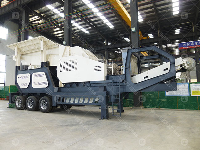 主要組成:移動車架、輪胎總成、液壓部分,重錘式破碎機、給料機、輸送帶、電動機和制動控制箱等。